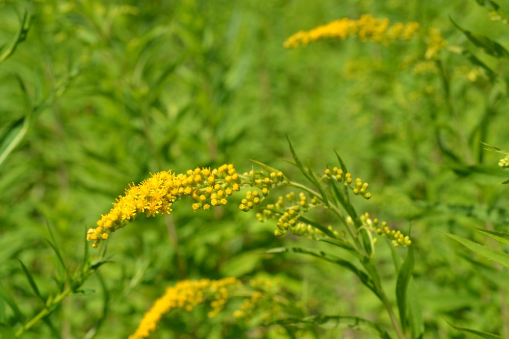 Méthodes de contrôle ou d’éradication mécaniques | Une fauche répétée deux fois par an fin mai et mi-août (avant la maturité des graines) permet de limiter l'expansion des massifs de solidages américains. Cette méthode de gestion doit être renouvelée pendant plusieurs années afin d'épuiser les réserves des rhizomes et la banque de graines du sol. Une seule coupe par an ne réduit pas le nombre de tiges, et au contraire, elle peut augmenter la densité de la population l'année suivante. |